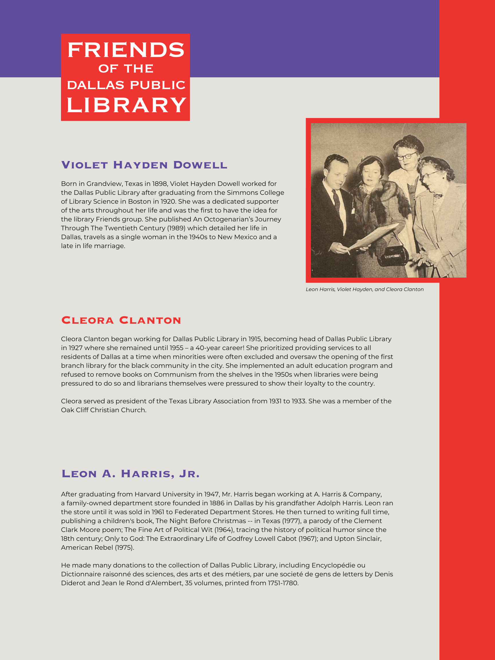 A series of 18”x24” posters designed for a historical exhibit put on by the Friends of The Dallas Public Library, an organization that’s been supporting the Dallas Public Library system for over 75 years.
