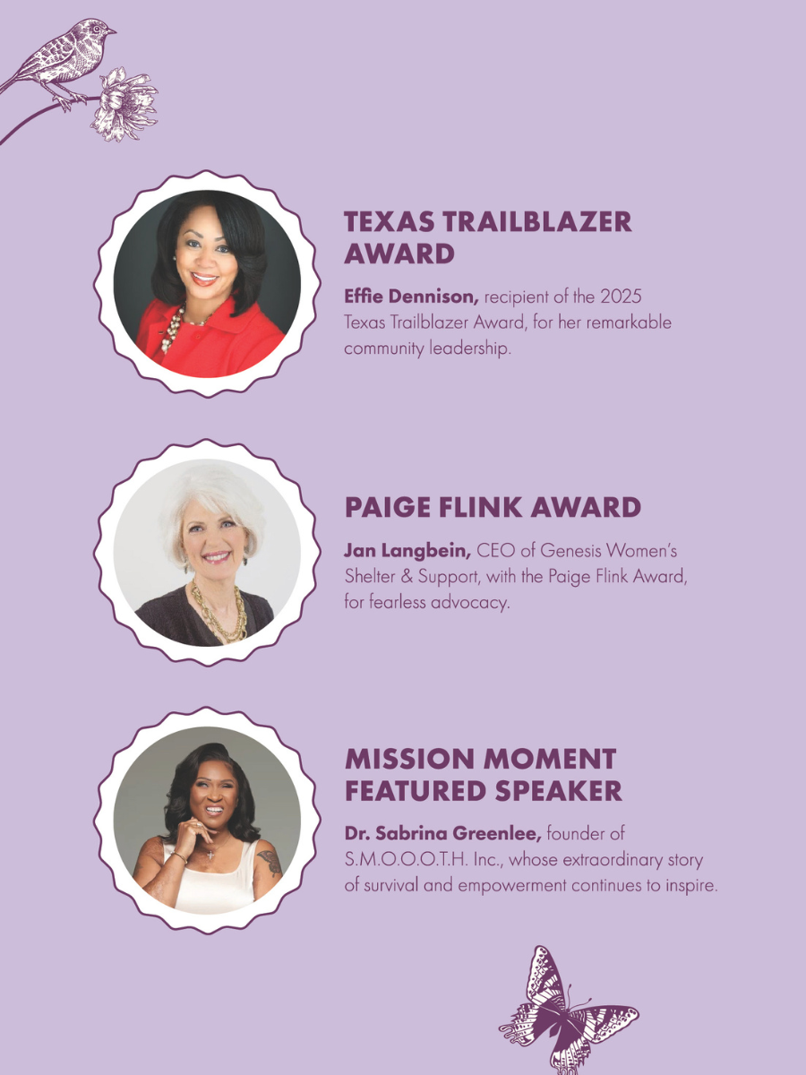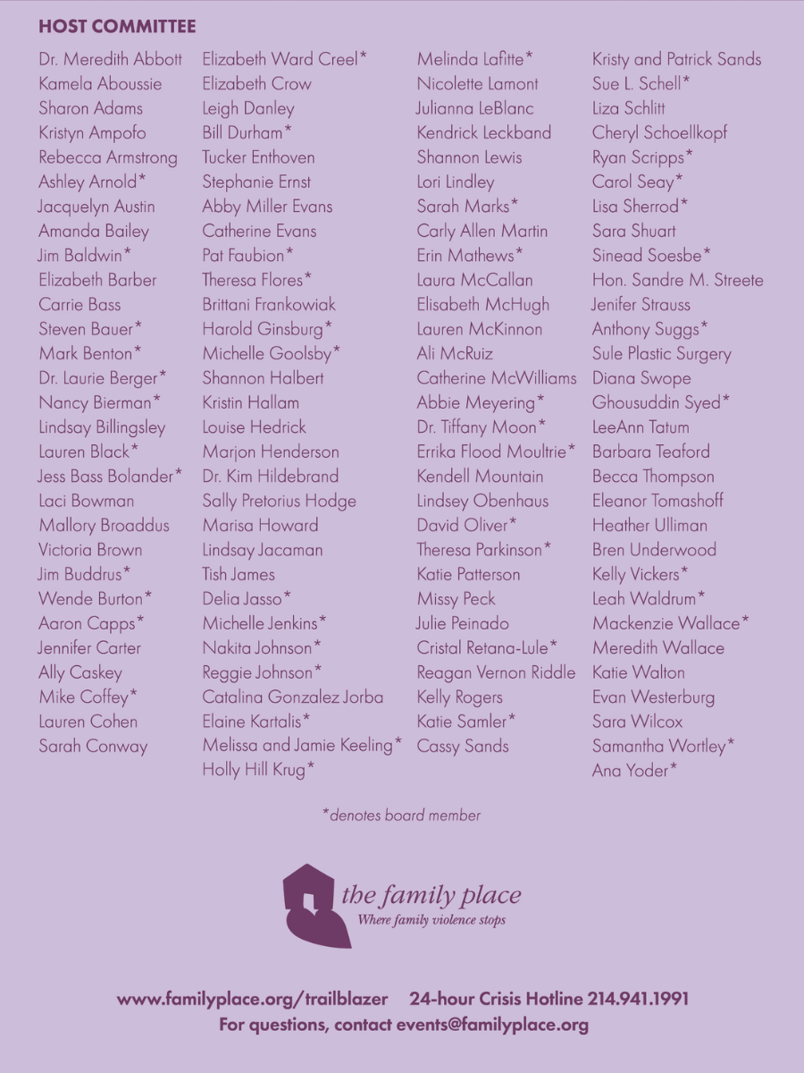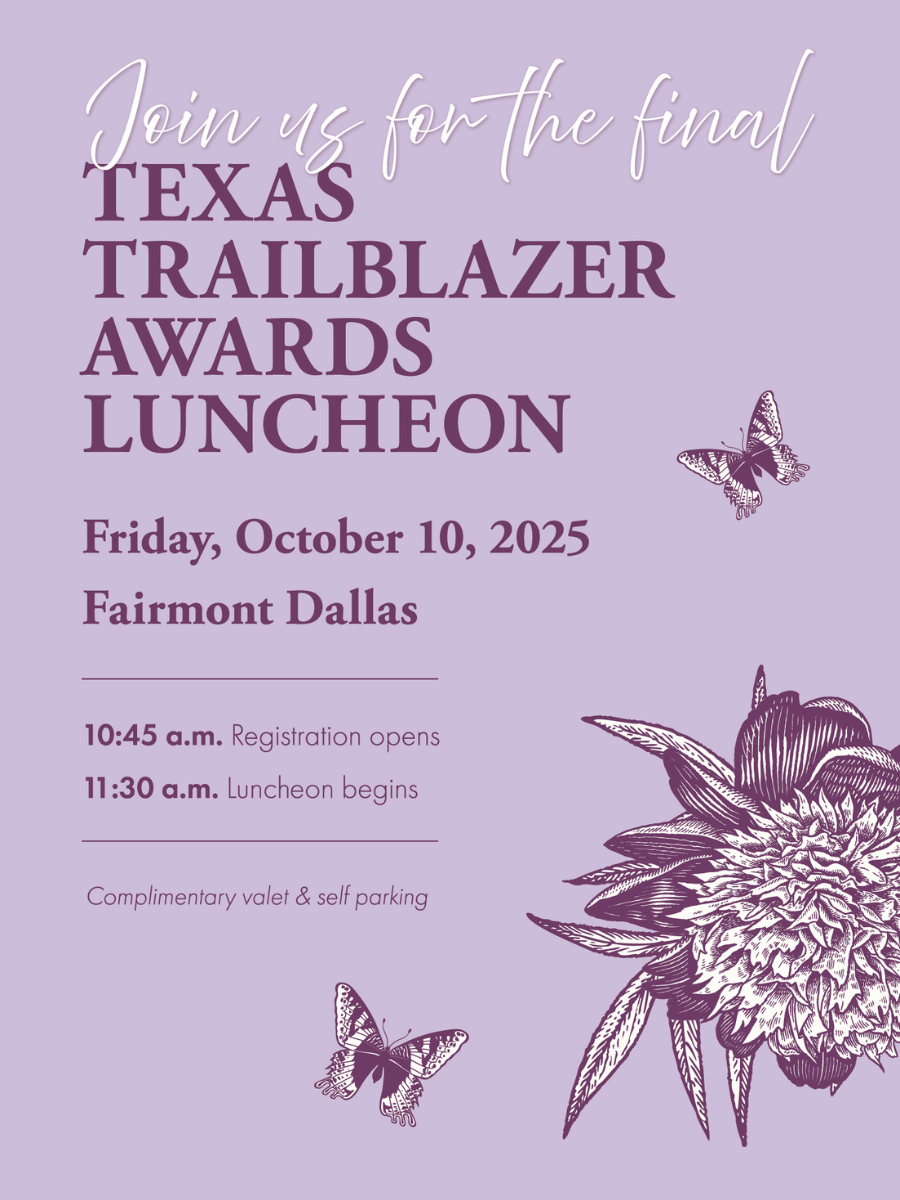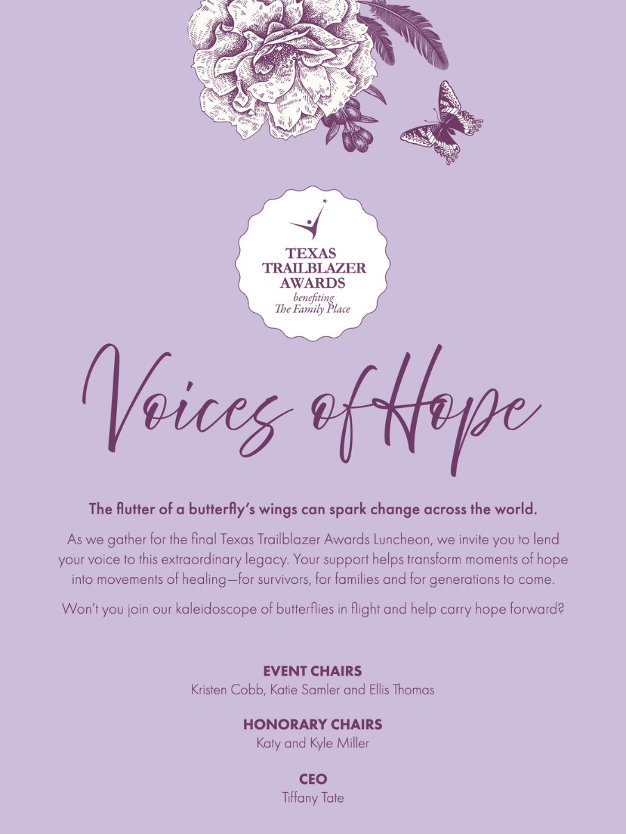 This trifold invitation was designed for the 2025 Trailblazer Awards ceremony held by The Family Place, a domestic violence shelter in Dallas.